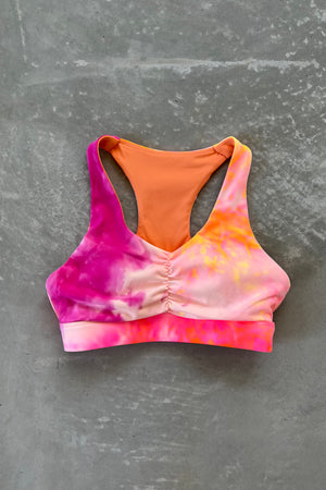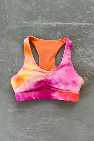 A super special limited edition tie-dye version of our bestselling sports bra in Sunburst! Each one is unique: if you get two, we will be sure to give you different looking ones!