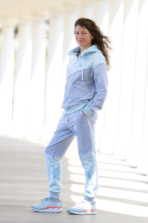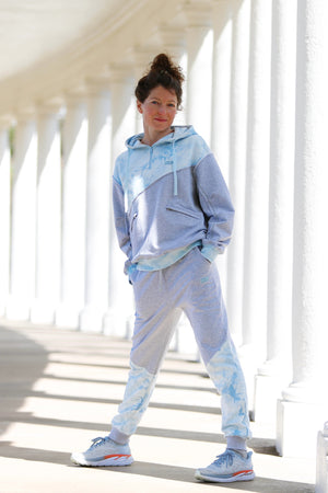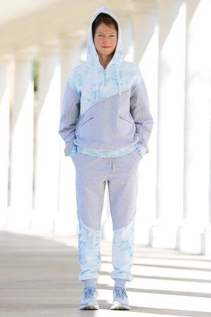 light grey heather: 95% cotton/5% spandex, tie-dye: 100% heavyweight French terry cotton