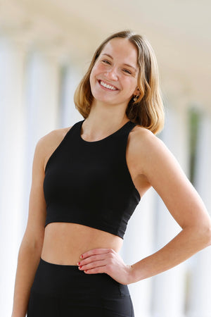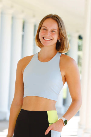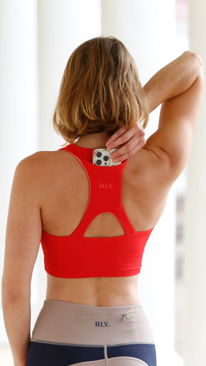 The Kella Pocket Crop Top features a super supportive, comfortable performance fabric blend and a back pocket to hold your phone, on-the-run nutrition, or other essentials. A super flattering and comfortable crop top sports bra that won't pinch you at the bottom hem thanks to our unique interior built in bra support and design!