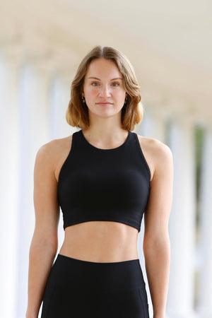 The Kella Pocket Crop Top features a back pocket to hold your phone, on-the-run nutrition, or other essentials. A super flattering and comfortable crop top sports bra that won't pinch you at the bottom hem thanks to our unique interior built in bra support and design!