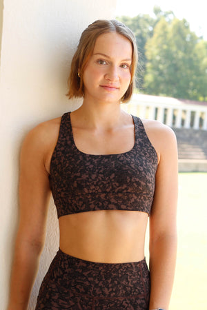 This special super limited edition of the Shannon Run Bra is made of SoftSupport™, a super supportive, super soft performance fabric! This is an amazingly comfortable high support sports bra! Available in leopard print, pair this bra with the matching Rachel Pocket Shorts.