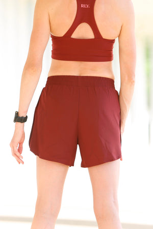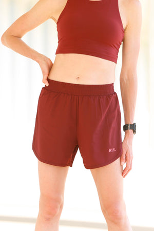 Try pairing these with the Kella Pocket Crop Top in cranberry and the Brooklyn Pocket Bra in garnet tie-dye, both of which match!