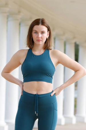 The Kella Pocket Crop Top features a super supportive, comfortable performance fabric blend and a back pocket to hold your phone, on-the-run nutrition, or other essentials. A super flattering and ultra comfortable crop top sports bra that won't pinch you at the bottom hem thanks to our unique interior built in bra support and design!