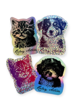 Choose from the cat sticker pack or dog sticker pack (2 stickers, one each of holographic and glitter), or get all 4 stickers shown here!