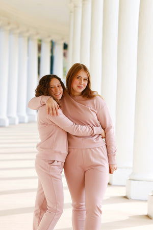 Pair with our matching Sunday Essentials Crewneck Sweatshirt in rose for the most adorable matching lounge set around. We also recommend the Belmont Bra in summer storm as a cute addition to this kit!
