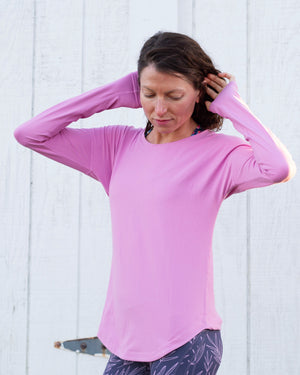 This will be the softest performance long sleeve you own. Fashion meets comfort meets performance in the details of this long sleeve: the best and truly softest brushed fabric in a flattering cut designed to carry you through the finish of your next cool weather workout or to stay comfortable anytime.