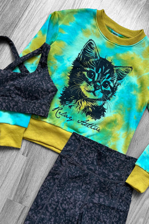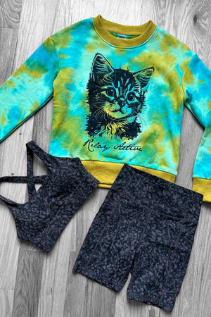 The PURR-fect (yes, we went there!) GIFT for the Cat Mom in your life! Includes the limited edition kitten graphic sweatshirt plus matching leopard print Shannon Run Bra and Rachel Pocket Shorts (5.7 in. inseam) set!