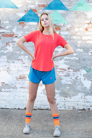 The softest performance short sleeve you will own. Fashion meets comfort meets performance in the details of this tee: the best and truly softest brushed fabric in a flattering cut designed to carry you through the finish of your next workout. A lighterweight version of our popular Skylar Short Sleeve! Named after one of our favorite places to run in Pittsburgh!