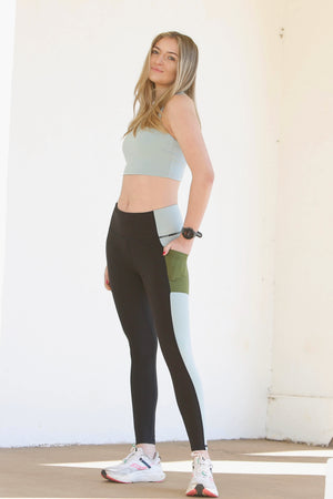 This special limited edition of the Kayla Pocket Leggings! Pair these leggings with the Kella Pocket Crop Top in blue slate, Kella Pocket Crop Top in oatmeal, and Camryn Run Bra in blue slate/oatmeal.