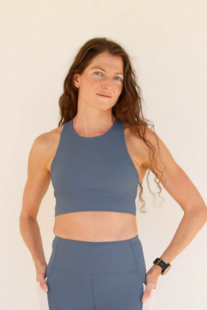 The Kella Pocket Crop Top features a back pocket to hold your phone, on-the-run nutrition, or other essentials. A super flattering and comfortable crop top sports bra that won't pinch you at the bottom hem thanks to our unique interior built in bra support and design!