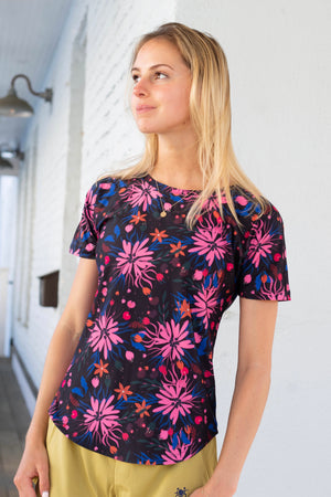 The softest performance short sleeve you'll own. Fashion meets comfort meets performance in the details of this tee: the best and truly softest brushed fabric in a flattering cut designed to carry you through the finish of your next workout. A lighterweight version of our popular Skylar Short Sleeve! Named after one of our favorite places to run in Pittsburgh!