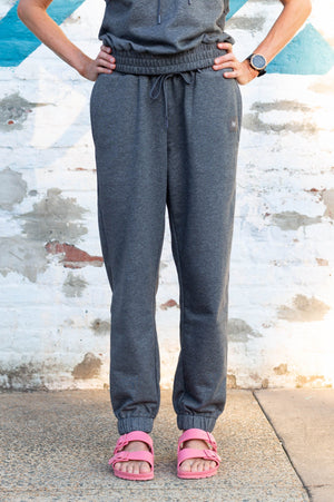 Made of a high end French terry cotton/poly blend, the all new Team Joggers are literally the most comfortable pants ever, ever. Two front pockets, elastic waistband with added drawstring, relaxed fit. Perfect for pre- and post-run lounging, a relaxed yoga practice, or just staying really, really, really darn comfortable anytime.