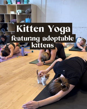 A portion of the proceeds from every kitten yoga class goes right back to the animal shelter too! Class size is limited; reserve your spot today!