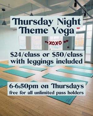 $125.00$80/month for unlimited yoga including all regular drop-in classes + Thurs. Night Theme Yoga! All mats and props provided.